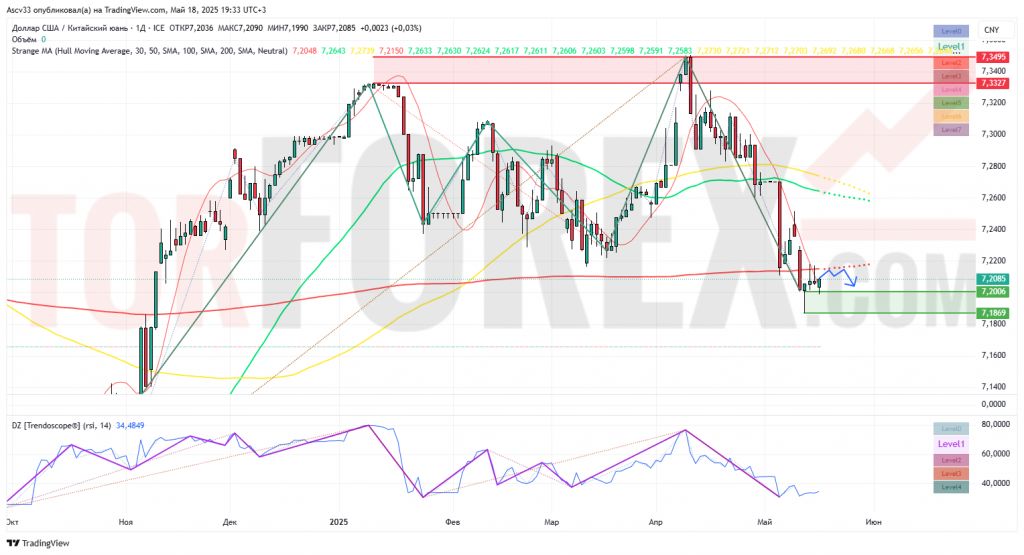 • Шорт от 7.2200–7.2300 с целями 7.2000 / 7.1869