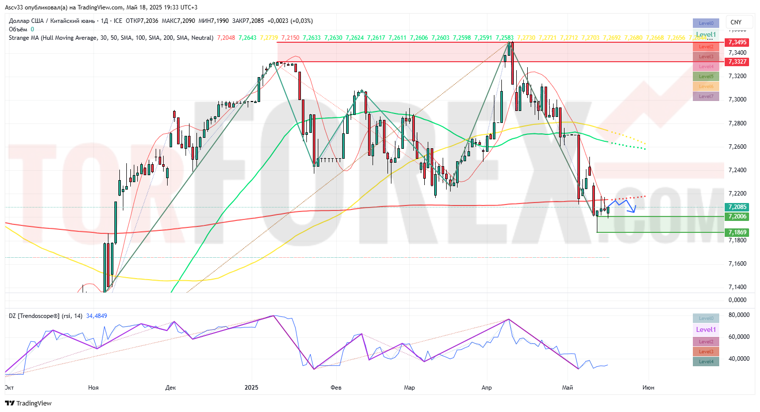 Прогноз Доллар Юань USD/CNY на неделю 19 — 25 мая 2025