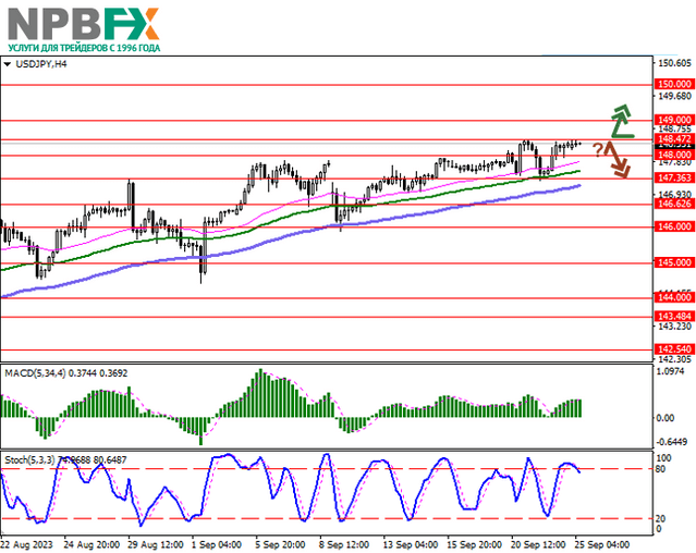 Уровни поддержки: 148.00, 147.36, 146.62, 146.00.