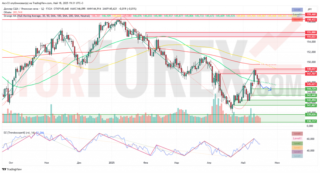 USD/JPY формирует локальный разворот после отскока от зоны сопротивления. Техническая картина в пользу краткосрочной коррекции с потенциалом снижения к 144.00 и ниже. Тренд остаётся под контролем продавцов до возврата выше 147.70.
