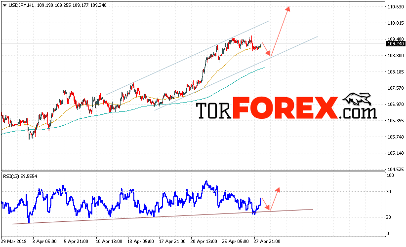 Таким образом, USD/JPY прогноз Доллар Иена на 1 мая 2018 предполагает попытку теста уровня поддержки вблизи области 108.80 и продолжения роста котировок в область выше уровня 110.65, в пользу роста пары выступит тест линии тренда на индикаторе относительной силы, отменой варианта роста станет падение и пробой области 107.50.