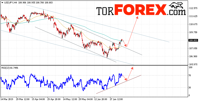 Таким образом, USD/JPY прогноз Доллар Иена на 10 июля 2019 предполагает попытку теста области поддержки вблизи уровня 108.05. Затем продолжение роста котировок в область выше уровня 111.65. В пользу подъёма пары выступит тест линии тренда на индикаторе относительной силы. Отменой варианта роста станет падение и пробой области 106.95. Это укажет на пробой уровня поддержки и продолжение развития нисходящего движения по паре с потенциальной целью ниже уровня 104.55.