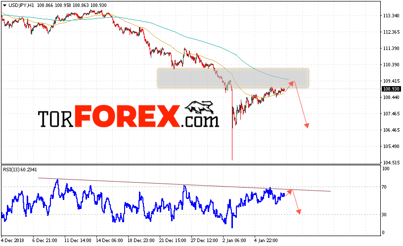 Таким образом, USD/JPY прогноз Доллар Иена на 10 января 2019 предполагает попытку теста области сопротивления вблизи уровня 109.45. Затем продолжение падения котировок в область ниже уровня 106.45. В пользу падения пары выступит тест линии тренда на индикаторе относительной силы. Отменой варианта снижения станет сильный рост и пробой области 109.95. Это укажет на пробой уровня сопротивления и продолжение восходящего движения по паре.