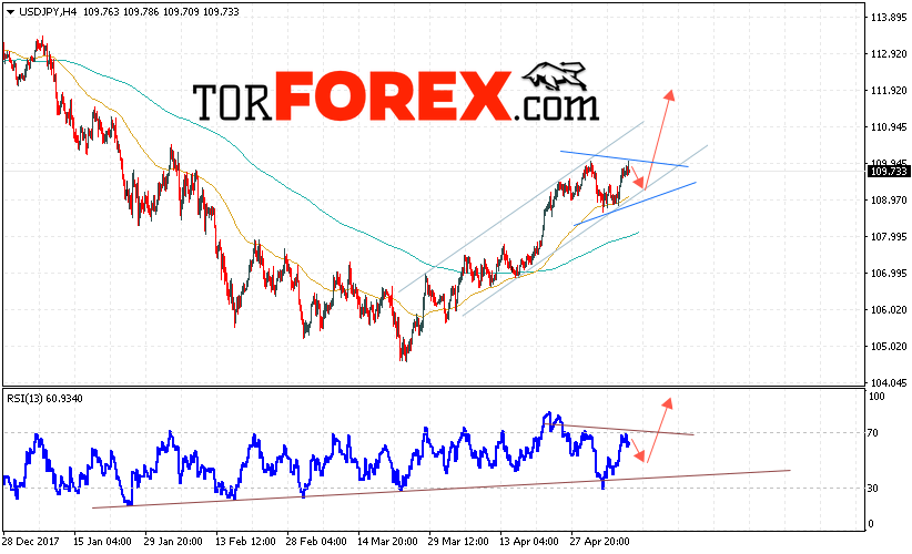 Таким образом, USD/JPY прогноз Доллар Иена на 11 мая 2018 предполагает попытку теста области поддержки вблизи уровня 109.10 и продолжения роста котировок в область выше уровня 112.00, в пользу роста пары выступит тест линии тренда на индикаторе относительной силы, отменой варианта роста станет падение и пробой области 108.50.