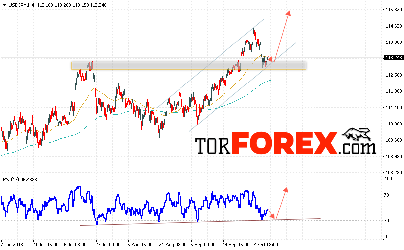 Таким образом, USD/JPY прогноз Доллар Иена на 11 октября 2018 предполагает попытку теста области поддержки вблизи уровня 113.05 и продолжения роста котировок в область выше уровня 115.35, в пользу роста пары выступит тест линии тренда на индикаторе относительной силы, отменой варианта роста станет снижение и пробой области 112.45, что укажет на пробой области поддержки и продолжение падения пары.