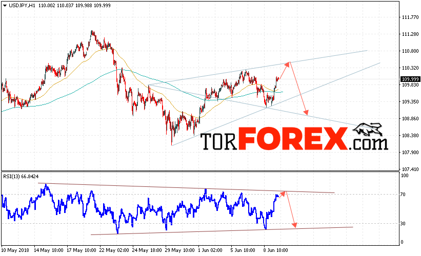 Таким образом, USD/JPY прогноз Доллар Иена на 12 июня 2018 предполагает попытку теста области сопротивления вблизи уровня 110.60 и продолжения падения котировок в область ниже уровня 109.00, в пользу падения с текущих уровней выступит тест линии тренда на индикаторе относительной силы, отменой варианта падения станет сильный рост и пробой области 111.85, что укажет на продолжение роста.