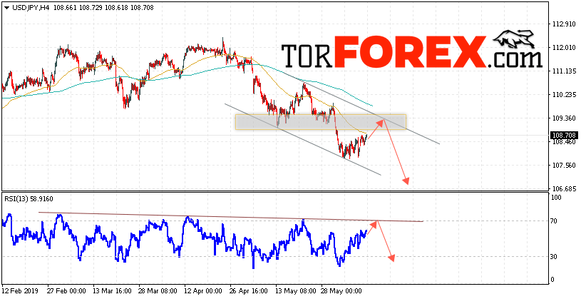 Таким образом, USD/JPY прогноз Доллар Иена на 12 июня 2019 предполагает попытку теста области сопротивления вблизи уровня 109.35. Затем продолжение роста котировок в область ниже уровня 106.65. В пользу падения пары выступит тест линии тренда на индикаторе относительной силы. Отменой варианта снижения станет сильный рост и пробой области 109.65. Это укажет на пробой уровня сопротивления и продолжение развития восходящего движения по паре с потенциальной целью выше уровня 110.45.