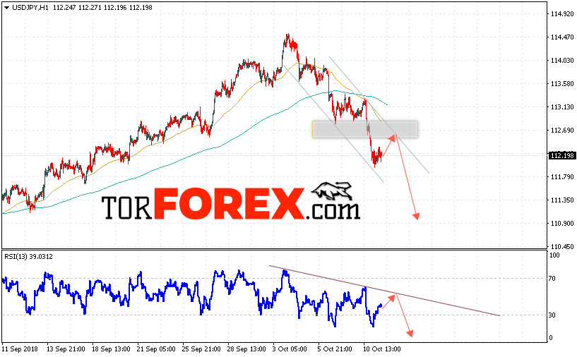Таким образом, USD/JPY прогноз Доллар Иена на 12 октября 2018 предполагает попытку теста области сопротивления вблизи уровня 112.65 и продолжения падения котировок в область ниже уровня 110.90, в пользу падения пары выступит тест линии тренда на индикаторе относительной силы, отменой варианта снижения станет сильный рост и пробой области 112.95, что укажет на пробой области сопротивления и продолжение роста пары.