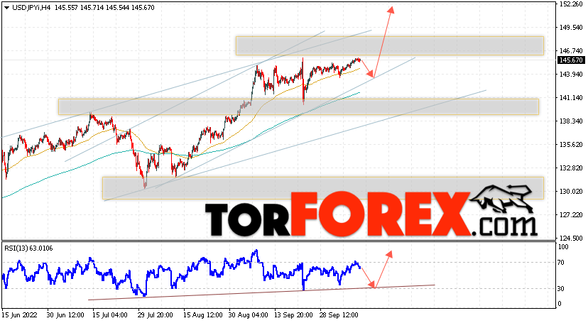 Дополнительным сигналом в пользу подъёма валютной пары USD/JPY выступит тест бычьей линии тренда на индикаторе относительной силы. Вторым сигналом станет отскок от нижней границы бычьего канала. Отменой варианта роста валютной пары Доллар Иена станет падение и пробой уровня 143.35. Это укажет на пробой области поддержки и продолжение падения пары Доллар Иена. В этом случае стоит ожидать продолжения падения пары в область ниже уровня 141.45. С пробоем области сопротивления и закрытием котировок выше уровня 147.75.