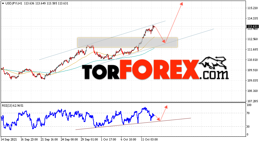 Котировки валютной пары Доллар Иена USD/JPY продолжают движение в рамках подъёма и бычьего канала. В момент публикации прогноза курс Доллара США к Японской Иене составляет 113.63. Скользящие средние указывают на наличие краткосрочной бычьей тенденции по паре. Цены пробили область между сигнальными линиями вверх, что указывает на давление со стороны покупателей Доллара США и потенциальное продолжение подъёма цен уже с текущих уровней. В рамках прогноза курса Японской Иены на 13 октября 2021 стоит ожидать попытку развития коррекции и тест области поддержки вблизи уровня 112.25. Далее, отскок вверх и продолжение подъёма пары USD/JPY в область выше уровня 115.35.