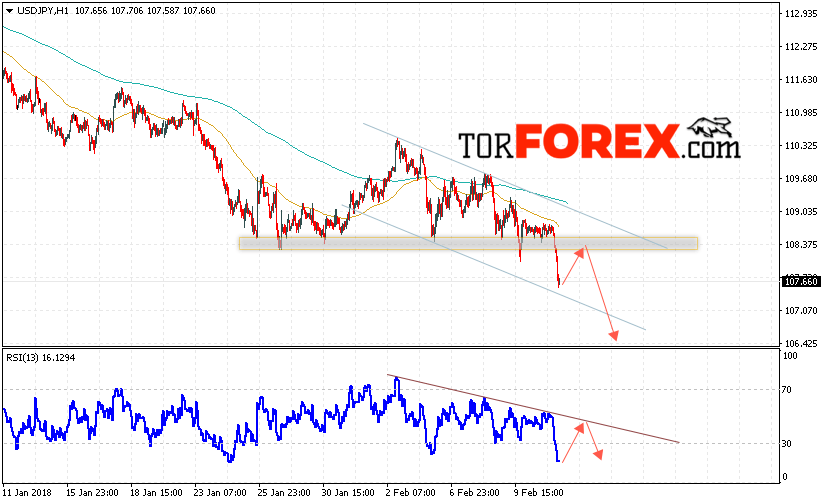 Таким образом, USD/JPY прогноз Доллар Иена на 14 февраля 2018 предполагает попытку теста уровня сопротивления вблизи области 108.40 и продолжения падения котировок в область ниже уровня 106.40, в пользу падения выступит тест линии тренда на индикаторе относительной силы.