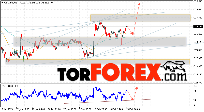 Котировки валютной пары Доллар Иена USD/JPY продолжают движение в рамках роста и бычьего канала. В момент публикации прогноза курс Доллара США к Японской Иене составляет 132.19. Скользящие средние указывают на наличие краткосрочной бычьей тенденции по паре. Цены ушли вверх от области между сигнальными линиями, что указывает на давление со стороны покупателей Доллара США и потенциальное продолжение роста цен уже с текущих уровней. В рамках прогноза курса Японской Иены на 14 февраля 2023 стоит ожидать попытку развития снижения и тест области поддержки вблизи уровня 131.25. Далее, отскок цены вверх и продолжение роста пары USD/JPY в область выше уровня 134.65.