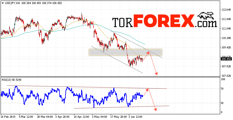 Таким образом, USD/JPY прогноз Доллар Иена на 14 июня 2019 предполагает попытку теста области сопротивления вблизи уровня 108.80. Затем продолжение роста котировок в область ниже уровня 107.05. В пользу падения пары выступит тест линии тренда на индикаторе относительной силы. Отменой варианта снижения станет сильный рост и пробой области 109.45. Это укажет на пробой уровня сопротивления и продолжение развития восходящего движения по паре с потенциальной целью выше уровня 110.55.