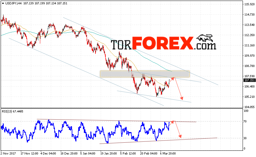Таким образом, USD/JPY прогноз Доллар Иена на 14 марта 2018 предполагает попытку теста уровня сопротивления вблизи области 107.60 и продолжения падения котировок в область ниже уровня 105.20, в пользу падения выступит тест нисходящей линии тренда на индикаторе относительной силы, отменой варианта снижения станет пробой области 108.50.