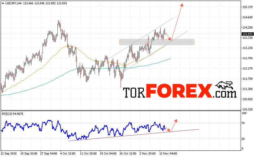 Таким образом, USD/JPY прогноз Доллар Иена на 14 ноября 2018 предполагает попытку теста области поддержки вблизи уровня 113.70. Далее продолжение роста котировок в область выше уровня 115.20. В пользу роста пары USD/JPY выступит тест линии тренда на индикаторе относительной силы. Отменой варианта роста валютной пары USD/JPY станет падение и пробой области 113.15. Это укажет на пробой нижней границы канала и продолжение снижения пары.