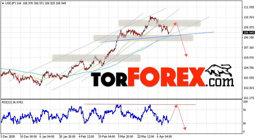 Таким образом, USD/JPY прогноз Доллар Иена на 15 апреля 2021 предполагает попытку теста области сопротивления вблизи уровня 109.75. Затем, продолжение падения котировок в область ниже уровня 105.95. В пользу падения пары выступит тест линии тренда на индикаторе относительной силы. Отменой варианта снижения станет сильный рост и пробой области 111.55. Это укажет на пробой уровня сопротивления и продолжение подъёма по паре с потенциальной целью выше уровня 113.25.