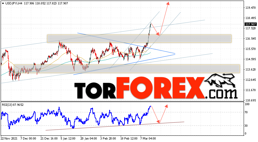 Таким образом, USD/JPY прогноз Доллар Иена на 15 марта 2022 предполагает попытку теста области поддержки вблизи уровня 116.70. Затем, продолжение роста котировок в область выше уровня 119.75. В пользу подъёма пары выступит тест линии тренда на индикаторе относительной силы. Отменой варианта роста станет падение и пробой области 114.95. Это укажет на пробой уровня поддержки и продолжение падения по паре с потенциальной целью ниже уровня 112.45.