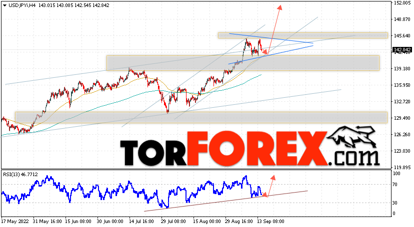Котировки валютной пары Доллар Иена USD/JPY продолжают движение в роста и бычьего канала. Есть потенциал для формирования модели ”Треугольник”. В момент публикации прогноза курс Доллара США к Японской Иене составляет 142.84. Скользящие средние указывают на наличие краткосрочной бычьей тенденции по паре. Цены пробили область между сигнальными линиями вверх, что указывает на давление со стороны покупателей Доллара США и потенциальное продолжение роста цен уже с текущих уровней. В рамках прогноза курса Японской Иены на 15 сентября 2022 стоит ожидать попытку развития незначительной коррекции и тест области поддержки вблизи уровня 142.35. Далее, отскок цены вверх и продолжение роста пары USD/JPY в область выше уровня 151.45.