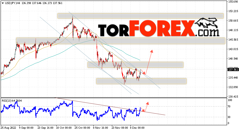 Котировки валютной пары Доллар Иена USD/JPY продолжают движение в рамках падения и нисходящего канала. Сохраняется потенциал для формирования разворотной модели ”Двойное дно”. В момент публикации прогноза курс Доллара США к Японской Иене составляет 137.56. Скользящие средние указывают на наличие краткосрочной медвежьей тенденции по паре. Цены пробили область между сигнальными линиями вниз, что указывает на давление со стороны продавцов Доллара США и потенциальное продолжение падения цен уже с текущих уровней. В рамках прогноза курса Японской Иены на 16 декабря 2022 стоит ожидать попытку развития коррекции и тест области поддержки вблизи уровня 137.05. Далее, отскок цены вверх и продолжение роста пары USD/JPY в область выше уровня 143.05.