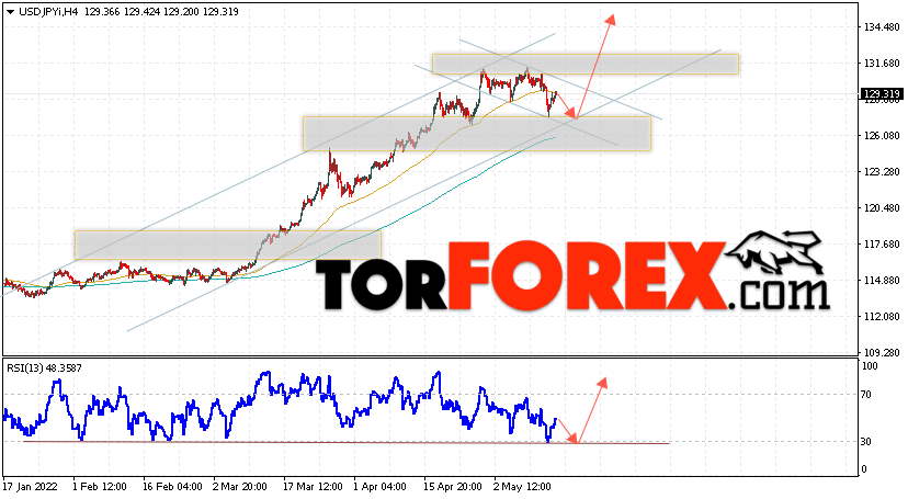 Дополнительным сигналом в пользу роста валютной пары USD/JPY выступит тест линии поддержки на индикаторе относительной силы. Вторым сигналом станет отскок от нижней границы бычьего канала. Отменой варианта роста валютной пары Доллар Иена станет падение и пробой уровня 125.85. Это укажет на пробой области поддержки и продолжение падения пары Доллар Иена. В этом случае стоит ожидать продолжения снижения пары в область ниже уровня 125.35. С пробоем области сопротивления и закрытием котировок выше уровня 131.25, что укажет на пробой верхней границы нисходящего канала.