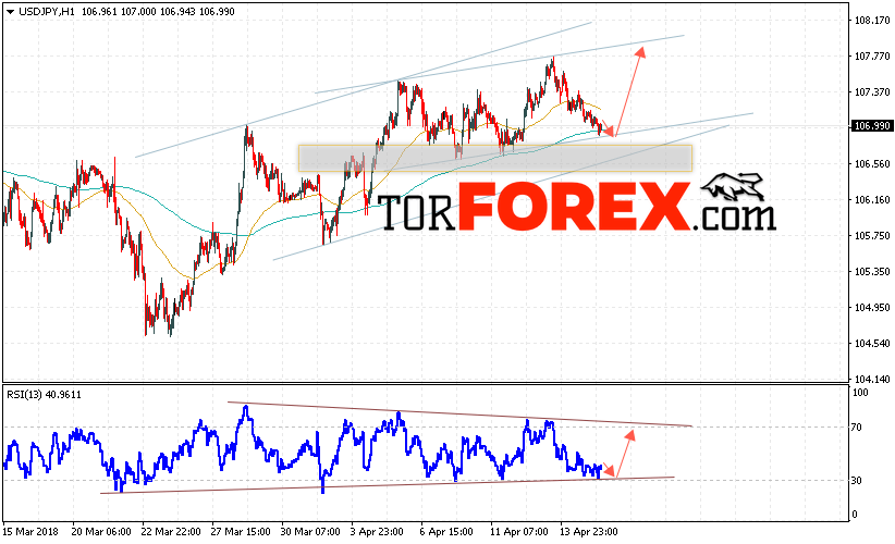 Таким образом, USD/JPY прогноз Доллар Иена на 18 апреля 2018 предполагает попытку теста уровня поддержки вблизи области 106.90 и продолжения роста котировок в область выше уровня 107.80, в пользу роста выступит тест линии поддержки на индикаторе относительной силы, отменой варианта роста станет падение и пробой области 106.50.