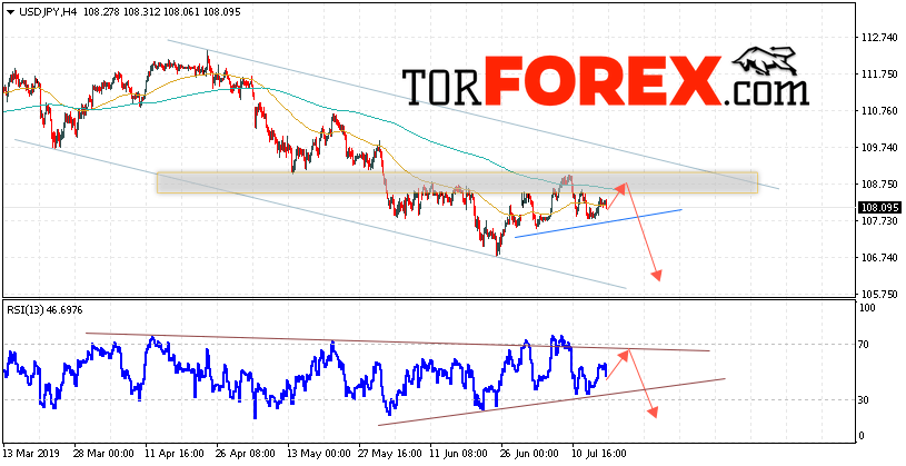 Таким образом, USD/JPY прогноз Доллар Иена на 18 июля 2019 предполагает попытку теста области сопротивления вблизи уровня 108.80. Затем продолжение падения котировок в область ниже уровня 105.65. В пользу снижения пары выступит тест линии тренда на индикаторе относительной силы. Отменой варианта падения станет сильный рост и пробой области 107.05. Это укажет на пробой уровня сопротивления и продолжение развития восходящего движения по паре с потенциальной целью выше уровня 109.45.