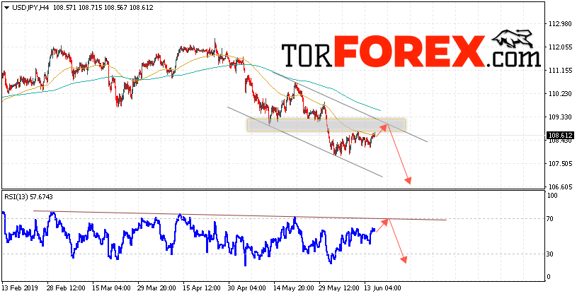 Котировки валютной пары Доллар Иена USD/JPY продолжают движение в рамках коррекции и нисходящего канала. В момент публикации прогноза курс Доллара США к Японской Иене составляет 108.61. Скользящие средние указывают на наличие краткосрочной нисходящей тенденции по паре. В рамках прогноза курса Японской Иены на 18 июня 2019 стоит ожидать попытку роста и тест области сопротивления вблизи уровня 108.85. Далее, отскок и продолжение падения пары USD/JPY в область ниже уровня 106.65.