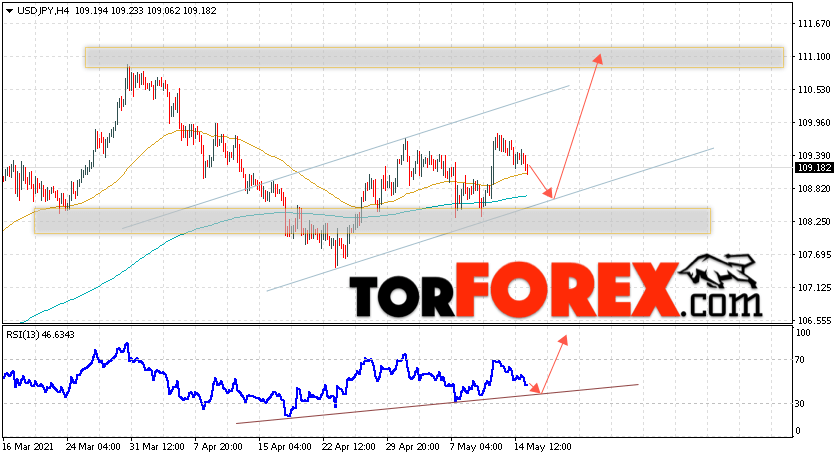 Котировки валютной пары Доллар Иена USD/JPY продолжают движение в рамках роста и бычьего канала. В момент публикации прогноза курс Доллара США к Японской Иене составляет 109.18. Скользящие средние указывают на наличие краткосрочной бычьей тенденции по паре. Цены ушли вверх от области между сигнальными линиями, что указывает на давление со стороны покупателей Доллара США и потенциальное продолжение роста цен уже с текущих уровней. В рамках прогноза курса Японской Иены на 18 мая 2021 стоит ожидать попытку развития коррекции и тест области поддержки вблизи уровня 108.65. Далее, отскок и продолжение роста пары USD/JPY в область выше уровня 111.15.
