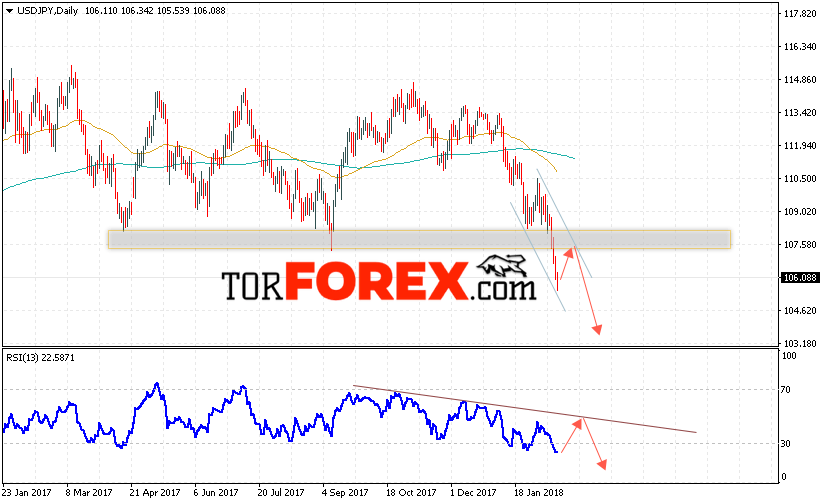 В пользу падения пары Доллар Иена выступит тест линии сопротивления на индикаторе относительной силы. Отменой варианта падения пары USD/JPY на текущей торговой неделе станет сильный рост и пробой области 109.50, что укажет на пробой верхней границы канала и продолжение роста пары на Форекс.