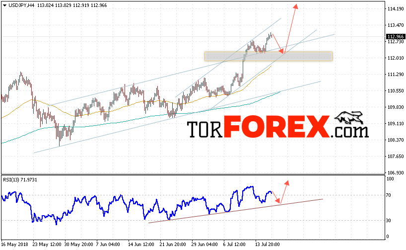 Таким образом, USD/JPY прогноз Доллар Иена на 19 июля 2018 предполагает попытку теста области поддержки вблизи уровня 112.25 и продолжения роста котировок в область выше уровня 114.00, в пользу роста пары выступит тест линии поддержки на индикаторе относительной силы, отменой варианта роста станет падение и пробой области 111.70, что укажет на продолжение падения пары.