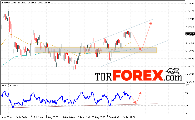 В пользу роста пары USD/JPY выступит тест линии тренда на индикаторе относительной силы, а также тест границы нижней границы восходящего канала. Отменой варианта роста пары Доллар Иена станет падение и пробой уровня 110.75, что укажет на пробой нижней границы восходящего канала и продолжение снижения пары Доллар Иена с целью ниже уровня 111.00. С пробоем области сопротивления и закрытием котировок выше уровня 112.45 стоит ожидать подтверждения развития восходящего движения по паре.