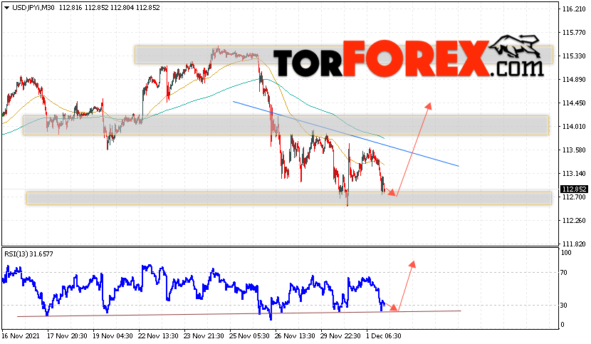 Таким образом, USD/JPY прогноз Доллар Иена на 2 декабря 2021 предполагает попытку теста области поддержки вблизи уровня 112.65. Затем, продолжение роста котировок в область выше уровня 114.45. В пользу роста пары выступит тест линии тренда на индикаторе относительной силы. Отменой варианта подъёма станет падение и пробой области 112.05. Это укажет на пробой уровня поддержки и продолжение падения по паре с потенциальной целью ниже уровня 110.55.