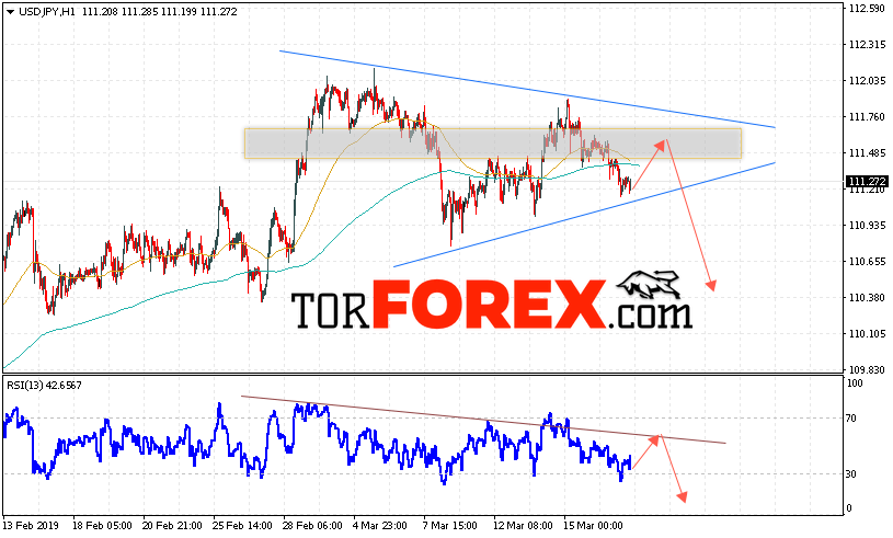 Таким образом, USD/JPY прогноз Доллар Иена на 20 марта 2019 предполагает попытку теста области сопротивления вблизи уровня 111.55. Затем продолжение падения котировок в область ниже уровня 110.35. В пользу снижения пары выступит тест линии тренда на индикаторе относительной силы. Отменой варианта падения станет сильный рост и пробой области 112.15. Это укажет на пробой уровня сопротивления и продолжение восходящего движения по паре с потенциальной целью выше уровня 113.75.