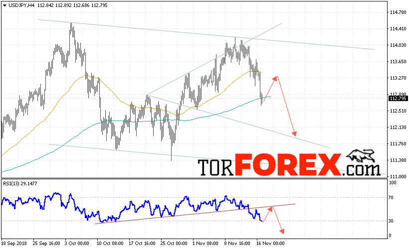 Таким образом, USD/JPY прогноз Доллар Иена на 20 ноября 2018 предполагает попытку теста области сопротивления вблизи уровня 113.25. Затем продолжение падения котировок в область ниже уровня 111.80. В пользу снижения пары выступит тест линии тренда на индикаторе относительной силы. Отменой варианта падения станет сильный рост и пробой области 114.10. Это укажет на пробой области сопротивления и продолжение восходящего движения по паре.