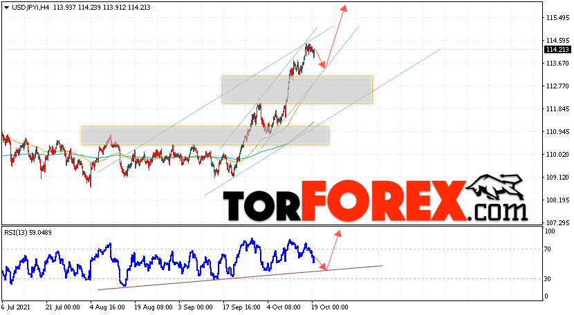 Котировки валютной пары Доллар Иена USD/JPY продолжают движение в рамках подъёма и бычьего канала. В момент публикации прогноза курс Доллара США к Японской Иене составляет 114.21. Скользящие средние указывают на наличие краткосрочной бычьей тенденции по паре. Цены пробили область между сигнальными линиями вверх, что указывает на давление со стороны покупателей Доллара США и потенциальное продолжение подъёма цен уже с текущих уровней. В рамках прогноза курса Японской Иены на 20 октября 2021 стоит ожидать попытку развития коррекции и тест области поддержки вблизи уровня 113.65. Далее, отскок вверх и продолжение подъёма пары USD/JPY в область выше уровня 116.95.