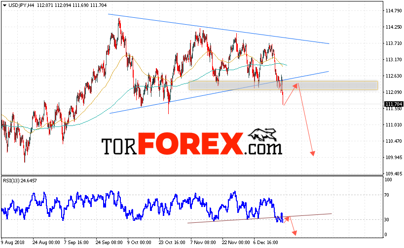 Таким образом, USD/JPY прогноз Доллар Иена на 21 декабря 2018 предполагает попытку теста области сопротивления вблизи уровня 112.25. Затем продолжение падения котировок в область ниже уровня 109.95. В пользу падения пары выступит тест линии тренда на индикаторе относительной силы. Отменой варианта снижения станет сильный рост и пробой области 112.85. Это укажет на пробой уровня сопротивления и продолжение восходящего движения по паре.