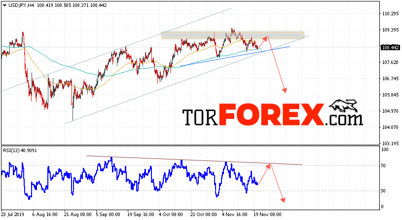 Таким образом, USD/JPY прогноз Доллар Иена на 21 ноября 2019 предполагает попытку теста области сопротивления вблизи уровня 109.05. Затем, продолжение падения котировок в область ниже уровня 105.85. В пользу подъёма пары выступит тест линии тренда на индикаторе относительной силы. Отменой варианта падения станет сильный рост и пробой области 109.95. Это укажет на пробой уровня сопротивления и продолжение развития восходящего движения по паре с потенциальной целью выше уровня 112.75.
