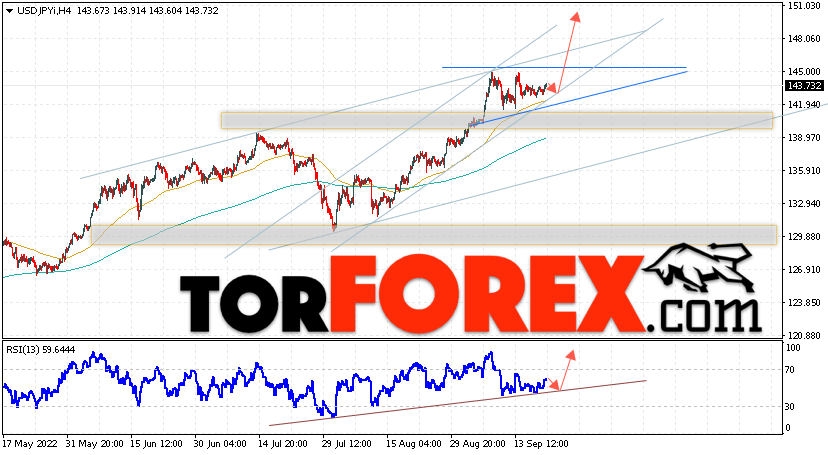 Котировки валютной пары Доллар Иена USD/JPY продолжают движение в коррекции и бычьего канала. Есть потенциал для формирования модели ”Треугольник”. В момент публикации прогноза курс Доллара США к Японской Иене составляет 143.35. Скользящие средние указывают на наличие краткосрочной бычьей тенденции по паре. Цены пробили область между сигнальными линиями вверх, что указывает на давление со стороны покупателей Доллара США и потенциальное продолжение роста цен уже с текущих уровней. В рамках прогноза курса Японской Иены на 21 сентября 2022 стоит ожидать попытку развития незначительной коррекции и тест области поддержки вблизи уровня 142.75. Далее, отскок цены вверх и продолжение роста пары USD/JPY в область выше уровня 147.45.