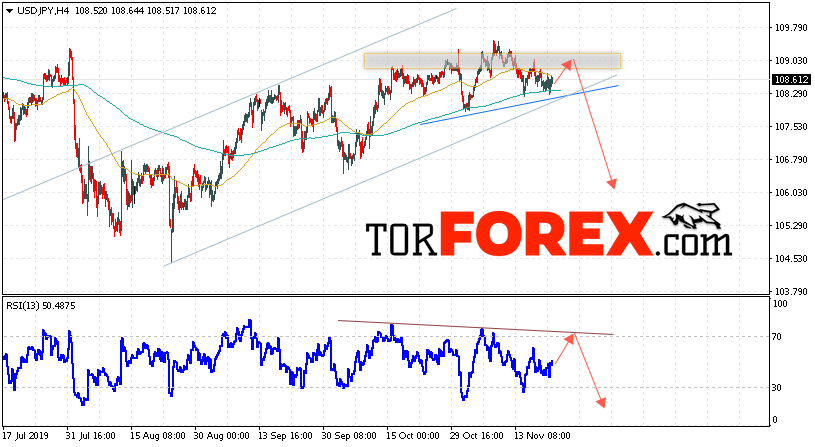 Таким образом, USD/JPY прогноз Доллар Иена на 22 ноября 2019 предполагает попытку теста области сопротивления вблизи уровня 109.05. Затем, продолжение падения котировок в область ниже уровня 106.05. В пользу подъёма пары выступит тест линии тренда на индикаторе относительной силы. Отменой варианта падения станет сильный рост и пробой области 109.95. Это укажет на пробой уровня сопротивления и продолжение развития восходящего движения по паре с потенциальной целью выше уровня 112.55.