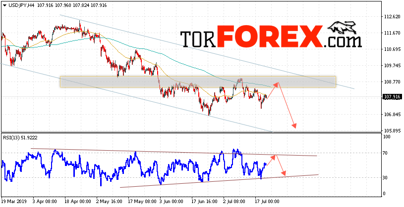 Таким образом, USD/JPY прогноз Доллар Иена на 23 июля 2019 предполагает попытку теста области сопротивления вблизи уровня 108.75. Затем продолжение падения котировок в область ниже уровня 105.95. В пользу снижения пары выступит тест линии тренда на индикаторе относительной силы. Отменой варианта падения станет сильный рост и пробой области 109.55. Это укажет на пробой уровня сопротивления и продолжение развития восходящего движения по паре с потенциальной целью выше уровня 110.75.