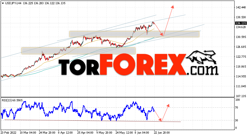 Дополнительным сигналом в пользу роста валютной пары USD/JPY выступит тест линии поддержки на индикаторе относительной силы. Вторым сигналом станет отскок от нижней нижней границы бычьего канала. Отменой варианта роста валютной пары Доллар Иена станет падение и пробой уровня 129.05. Это укажет на пробой области поддержки и продолжение падения пары Доллар Иена. В этом случае стоит ожидать продолжения снижения пары в область ниже уровня 127.45. С пробоем области сопротивления и закрытием котировок выше уровня 139.05, что укажет на пробой верхней границы бычьего канала.