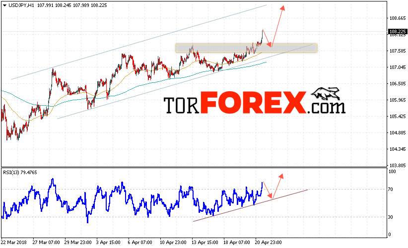 Таким образом, USD/JPY прогноз Доллар Иена на 24 апреля 2018 предполагает попытку теста уровня поддержки вблизи области 107.70 и продолжения роста котировок в область выше уровня 109.50, в пользу роста пары выступит тест линии тренда на индикаторе относительной силы, отменой варианта роста станет падение и пробой области 107.00.