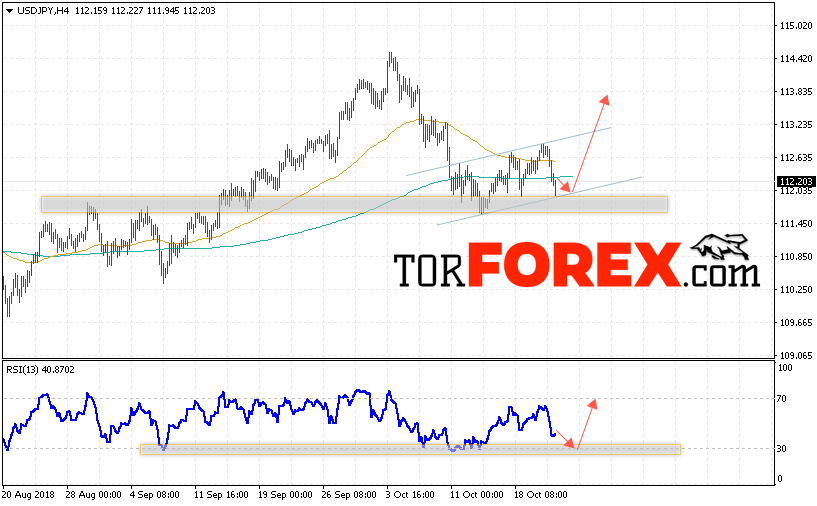 Таким образом, USD/JPY прогноз Доллар Иена на 24 октября 2018 предполагает попытку теста области поддержки вблизи уровня 112.00 и продолжения роста котировок в область выше уровня 113.85, в пользу роста пары выступит тест линии тренда на индикаторе относительной силы, отменой варианта роста станет падение и пробой области 111.45, что укажет на пробой области поддержки и продолжение снижения пары.