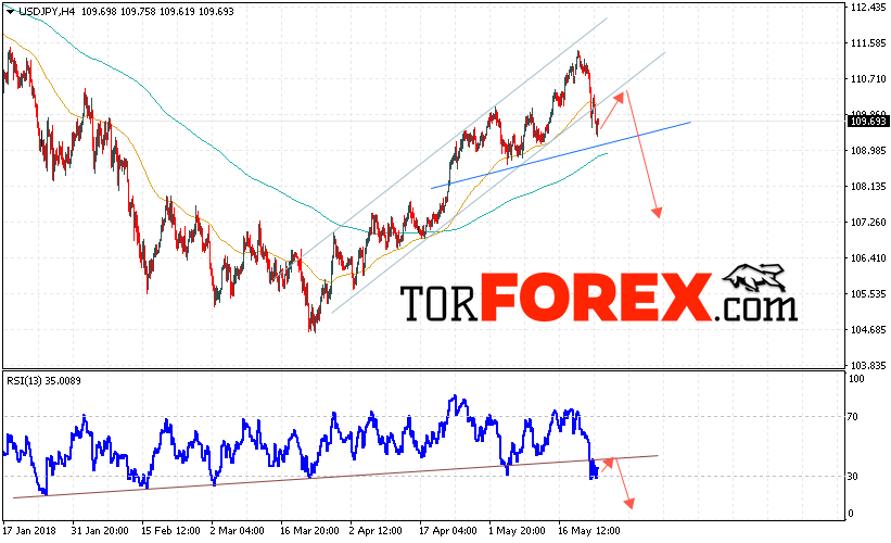 Таким образом, USD/JPY прогноз Доллар Иена на 25 мая 2018 предполагает попытку теста области сопротивления вблизи уровня 110.55 и продолжения падения котировок в область ниже уровня 107.20, в пользу падения выступит тест линии тренда на индикаторе относительной силы, отменой варианта падения станет сильный рост и пробой области 111.55.