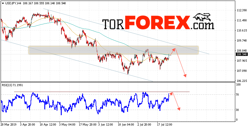 Таким образом, USD/JPY прогноз Доллар Иена на 26 июля 2019 предполагает попытку теста области сопротивления вблизи уровня 108.95. Затем продолжение падения котировок в область ниже уровня 106.25. В пользу снижения пары выступит тест линии тренда на индикаторе относительной силы. Отменой варианта падения станет сильный рост и пробой области 109.85. Это укажет на пробой уровня сопротивления и продолжение развития восходящего движения по паре с потенциальной целью выше уровня 111.45.