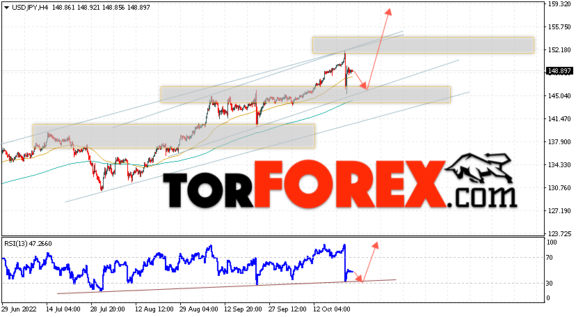 Котировки валютной пары Доллар Иена USD/JPY продолжают движение в рамках коррекции и бычьего канала. В момент публикации прогноза курс Доллара США к Японской Иене составляет 148.89. Скользящие средние указывают на наличие краткосрочной бычьей тенденции по паре. Цены пробили область между сигнальными линиями вверх, что указывает на давление со стороны покупателей Доллара США и потенциальное продолжение роста цен уже с текущих уровней. В рамках прогноза курса Японской Иены на 26 октября 2022 стоит ожидать попытку развития незначительной коррекции и тест области поддержки вблизи уровня 145.25. Далее, отскок цены вверх и продолжение роста пары USD/JPY в область выше уровня 157.85.