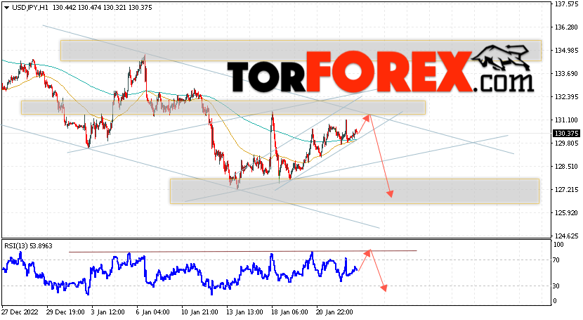 Таким образом, USD/JPY прогноз Доллар Иена на 26 января 2023 предполагает попытку теста области сопротивления вблизи уровня 131.25. Затем, продолжение падения котировок в область ниже уровня 126.75. В пользу снижения пары выступит тест линии тренда на индикаторе относительной силы. Отменой варианта падения станет сильный рост и пробой области 132.85. Это укажет на пробой уровня сопротивления и продолжение роста по паре с потенциальной целью выше уровня 134.75.