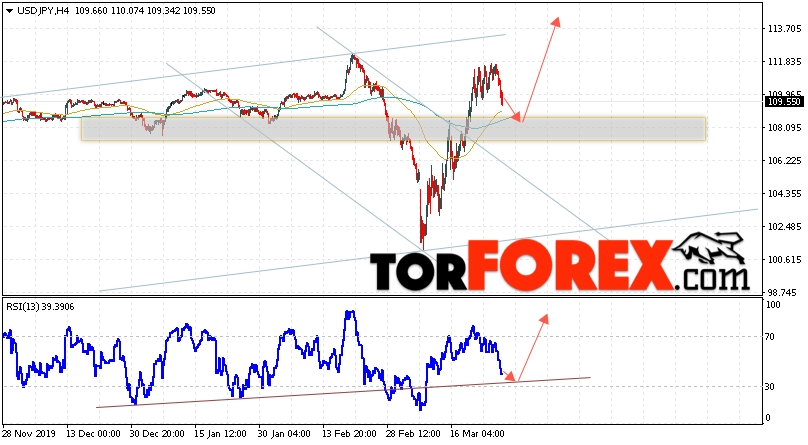 Таким образом, USD/JPY прогноз Доллар Иена на 27 марта 2020 предполагает попытку теста области поддержки вблизи уровня 109.05. Затем, продолжение роста котировок в область выше уровня 113.95. В пользу подъёма пары выступит тест линии тренда на индикаторе относительной силы. Отменой варианта роста станет падение и пробой области 106.05. Это укажет на пробой уровня поддержки и продолжение развития нисходящего движения по паре с потенциальной целью ниже уровня 103.55.