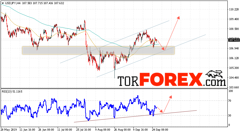В пользу роста валютной пары USD/JPY выступит тест пробитой линии поддержки на индикаторе относительной силы. Вторым сигналом станет отскок от нижней границы восходящего канала. Отменой варианта роста валютной пары Доллар Иена станет падение и пробой уровня 106.05. Это укажет на пробой области поддержки и продолжение снижения пары Доллар Иена. В этом случае стоит ожидать продолжения падения пары в область ниже уровня 103.65. С пробоем области сопротивления и закрытием котировок выше уровня 108.65 стоит ожидать подтверждения развития восходящего движения по паре.