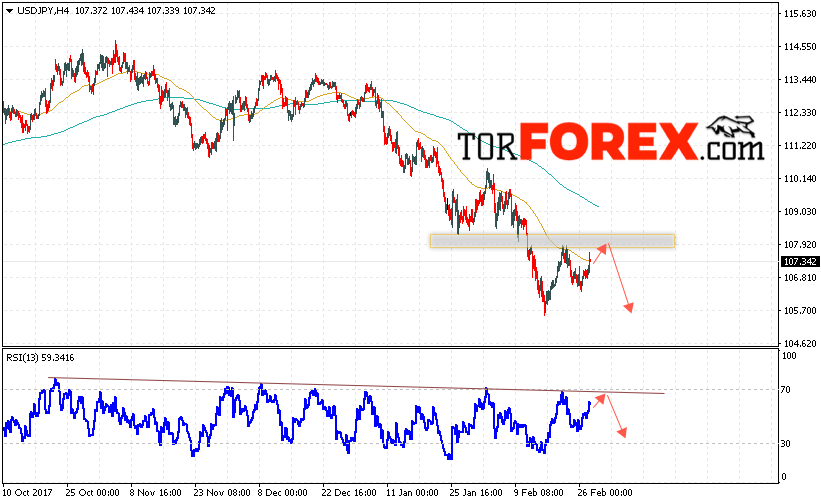 Таким образом, USD/JPY прогноз Доллар Иена на 28 февраля 2018 предполагает попытку теста уровня сопротивления вблизи области 107.90 и продолжения падения котировок в область ниже уровня 105.70, в пользу падения выступит тест нисходящей линии тренда на индикаторе относительной силы, отменой варианта снижения станет пробой области 108.65.